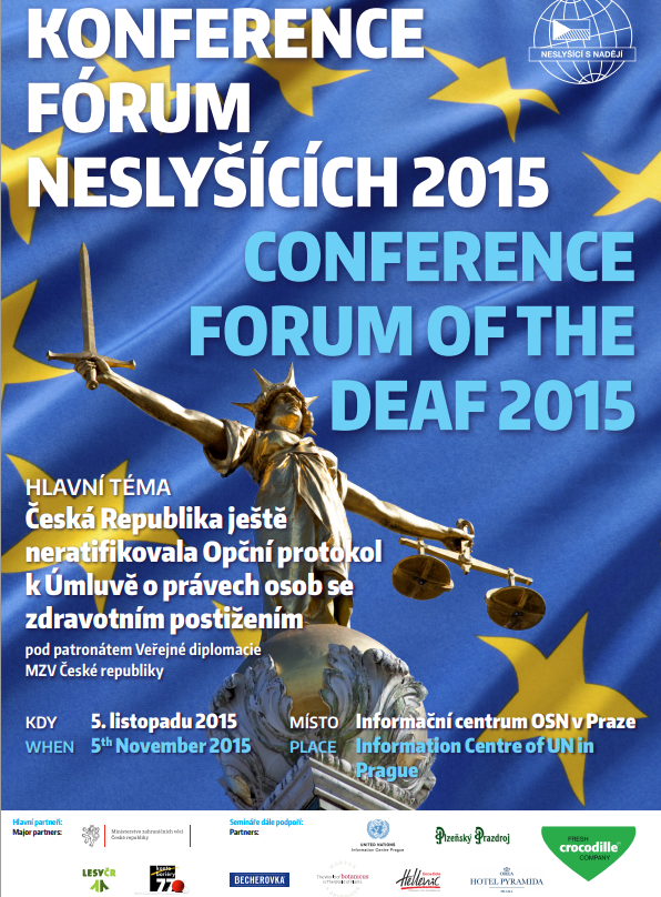 Fórum neslyšících 2015 Praha, Česká republika 5.11.2015 Fórum 2015Popis projektu Programy Registrace K dispozici tlumočnické překlady i přepis Plakát Místo semináře Kontakt Fotogalerie Plakát