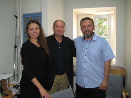 3. Foto: U kulatého stolu zprava dr. Ratkowski, Lupoměský a zleva tlumočnice a studující doktorantka.