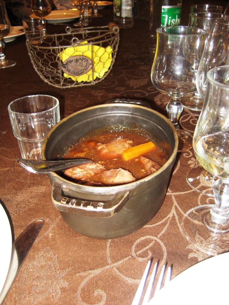 Jídlo bylo podobné německé kuchyní s vepřovým a velmi dobrým vínem.