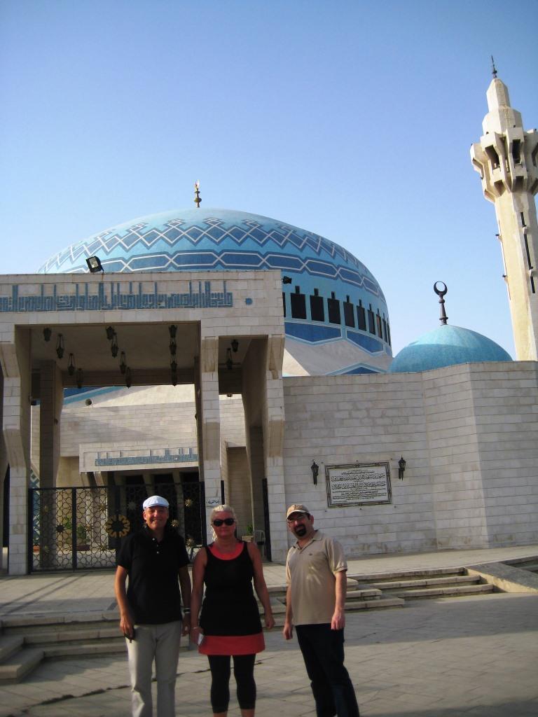 1. Foto: Naproti parlamentu se nachází mešita v Ammánu, nezapomenutelný symbol dohod o Transjordánsko, které se stalo britskou kolonií a časem získalo na Britech plnou nezávislost. Zleva Lupoměský a zprava Mudar, konzultant.